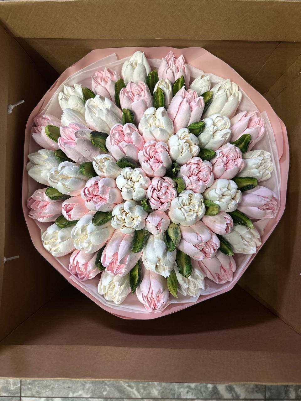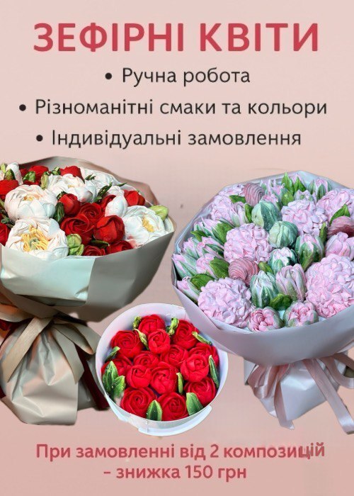 Наші зефірні композиції — це повністю ручна робота, тому кожен букет або коробочка є унікальними та можуть трохи відрізнятися від зразка на фото.