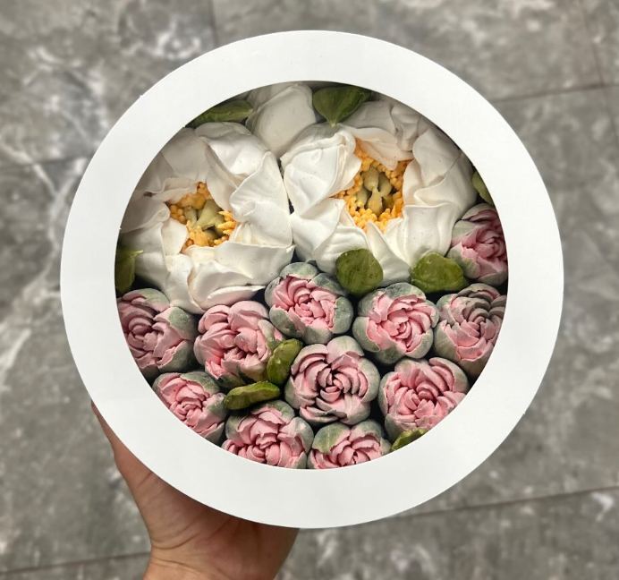 У наявності коробочки та букети розміром: S-20, M-25 і L-30 см — для подарунків, свят або просто гарного настрою.