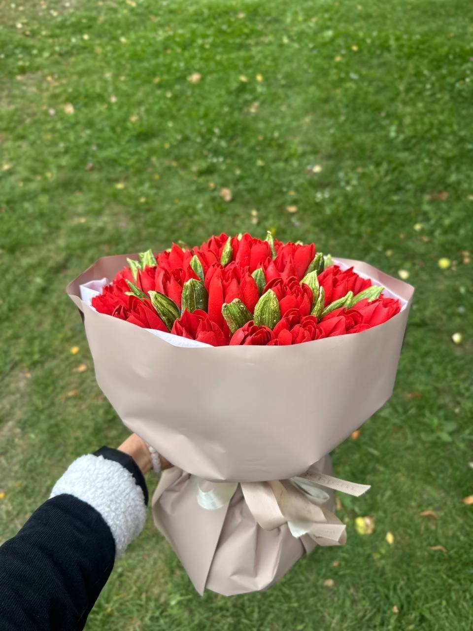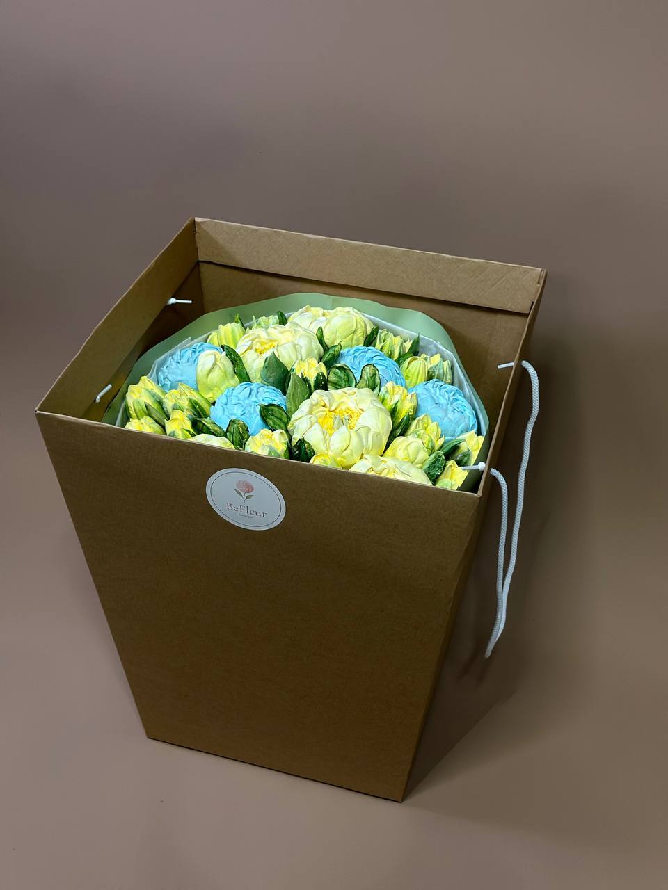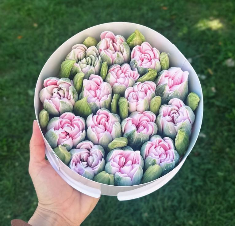У наявності коробочки та букети розміром: S-20, M-25 і L-30 см — для подарунків, свят або просто гарного настрою.