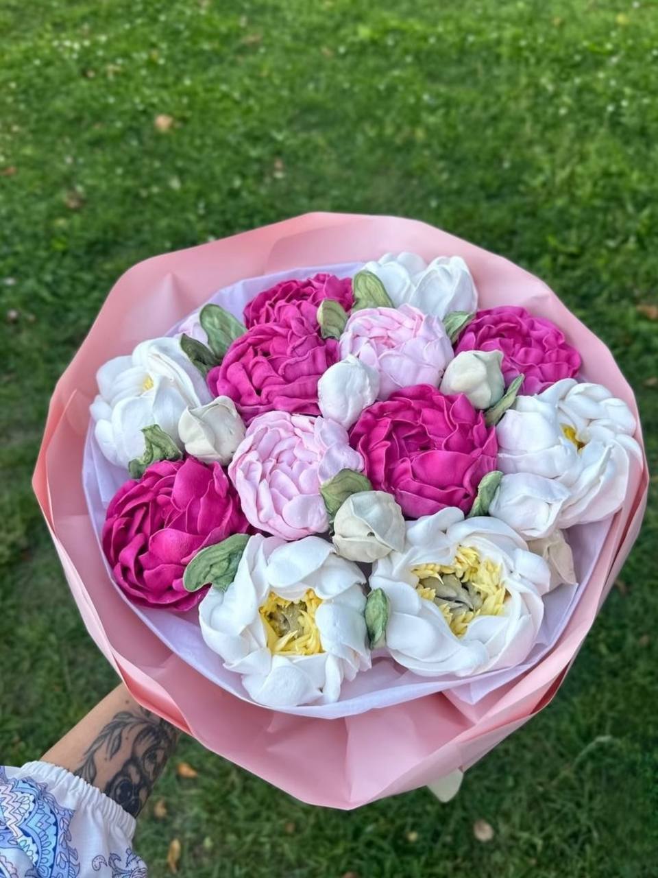 Наші зефірні композиції — це повністю ручна робота, тому кожен букет або коробочка є унікальними та можуть трохи відрізнятися від зразка на фото.